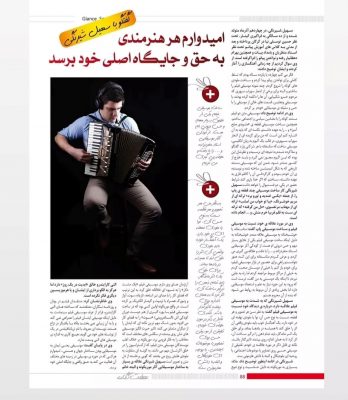 Interview Old Interview with Haft Negah Magazine (2011) Posted on 2025-02-032025-02-03 by admin Old Interview with Haft Negah Magazine (2011) In Tehran(Iran) By: Maryam Khosharng admin Interviews & Reviews Solo Piano No.1 Published in second festival of arts nowruz by by Post Orientalism Music.